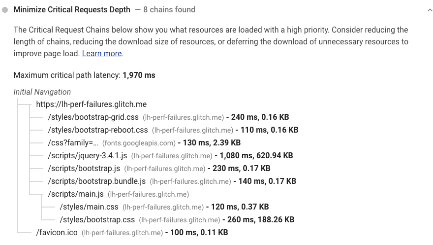 For the second test I added an 85kb CSS file to the page. The difference in the Core Web Vitals results is even more noticeable. The First Contentful Paint (FCP) improved from 1.8 seconds to 1.4 seconds and theLAragest Contentful Paint (LCP) improved from 3.2 seconds to a mere 2 seconds.